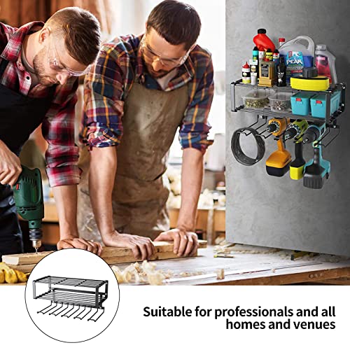 【GRANDI DIMENSIONI】 Le dimensioni dell'organizer per trapano a batteria sono 44 x 19,5 x 16 cm, il telaio ispessito e i giunti saldati rinforzati possono contenere 130 libbre. e trainare 45 libbre. È abbastanza grande per qualsiasi scenario di utilizzo. Questo supporto da parete per organizer per utensili elettrici aiuta a mantenere in ordine la stanza degli attrezzi, il garage, il capannone, il pannello forato e il magazzino.