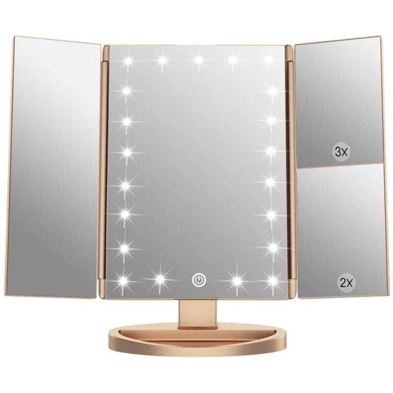 Specchio per il trucco WEILY con luci -180 gradi ruotabili liberamente con una struttura di supporto sul retro possono essere fissati in qualsiasi posizione. -Il supporto dello specchio è staccabile e puoi metterlo nella borsa o nello zaino, quindi il trucco non è più un problema per ragazze o donne. Lo specchio per il trucco Con un corpo e un pacchetto attraenti, è un regalo perfetto per donne e ragazze ad Halloween, Natale, Capodanno, San Valentino, Festa della mamma, Compleanno, Festa, Spettacolo, Occasioni speciali, ecc. Facile da usare ①Metti lo specchio nel supporto ②Inserire il cavo micro USB nella parte inferiore o 4 batterie AAA nella parte posteriore. ③Toccare premendo l'interruttore del sensore per accendere / spegnere la luce. ④Premere e tenere premuto l'interruttore del sensore senza rilasciarlo per regolare la luminosità. specificazione Colore: Oro Materiale del telaio: ABS Dimensione specchio: 10,83 * 7,09 pollici (specchio aperto) Luci a LED: Striscia Led cerchiata