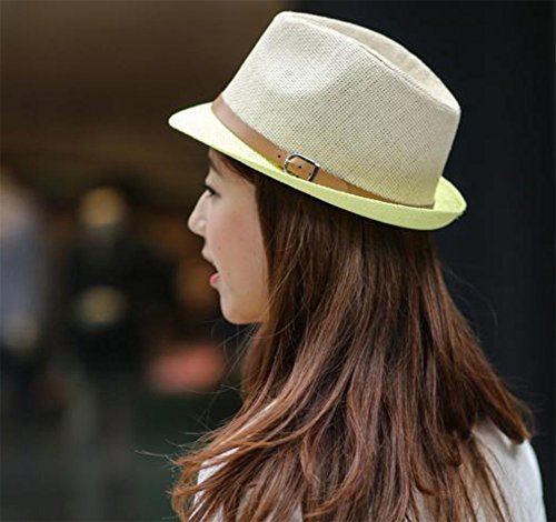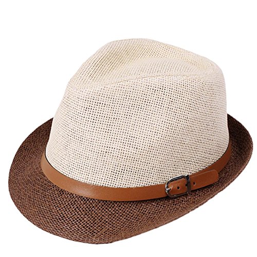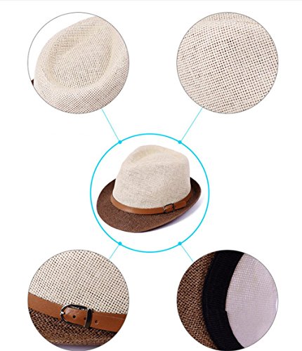 Weimay Anti-UV Cappello Panama di Paglia Universal Leather Buckle Unisex Panama Cappellino da Spiaggia Fedora Sun con Cappelli Regolabili,Cappello Donna Estivo(caffè)