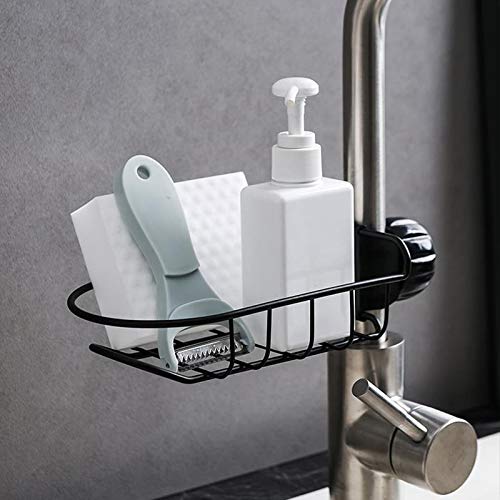 Weimay Cremagliera Del Rubinetto, Porta Spugna Per Rubinetto Da Cucina In Acciaio Inossidabile, Utilizzata Per Sapone/Spugna, Fissata Intorno Al Rubinetto (Nero)