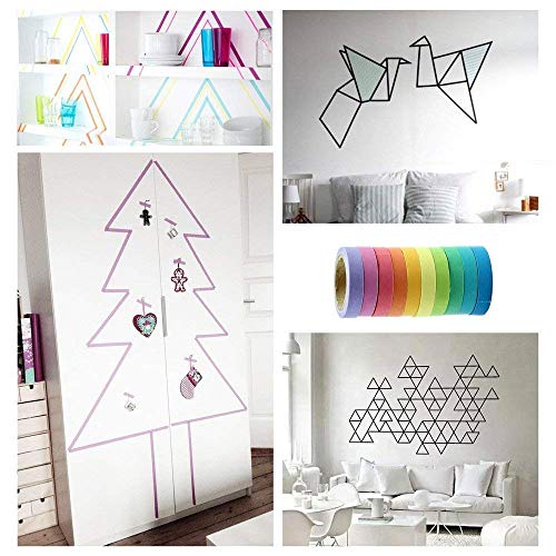 Weimay - 10 Rotoli di nastro decorativo colorato, motivo arcobaleno, adesivo per diario, biglietti, bricolage, artigianato, scrapbooking
