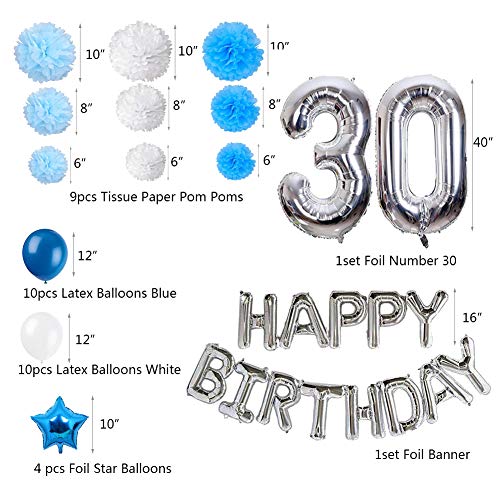 Weimi 30 Decorazioni di Compleanno per Gli Uomini 20pcs Latext Palloncini di Carta 9pcs Velina Pom Pom
