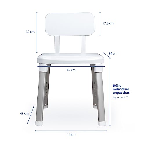 Weinberger Sedia da doccia e da bagno, con schienale, regolabile in altezza, piedini antiscivolo, modello: 43906