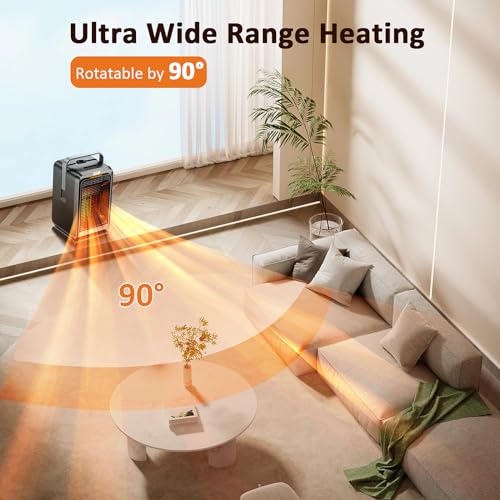 【Ventilatore in Ceramica】Il flusso d'aria PTC in ceramica viene riscaldato rapidamente e non è necessario attendere a lungo per il riscaldamento. L'elemento riscaldante in ceramica PTC è dotato di una struttura a "canale dell'aria compressa a doppia potenza anti-interferenza", un riscaldamento ad alta efficienza da 1000 W e una rapida diffusione di aria calda. Riscaldamento grandangolare a 90 °, area di riscaldamento più ampia.