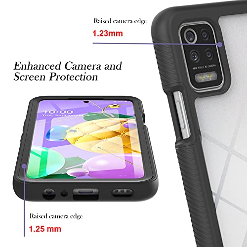 WEIOU Cover per LG K42 / K52 / K62 con Protezione dello Schermo, 360 Gradi Silicone TPU Bumper e Trasparente PC Pannello Rugged Custodia Protettiva Case. Nero