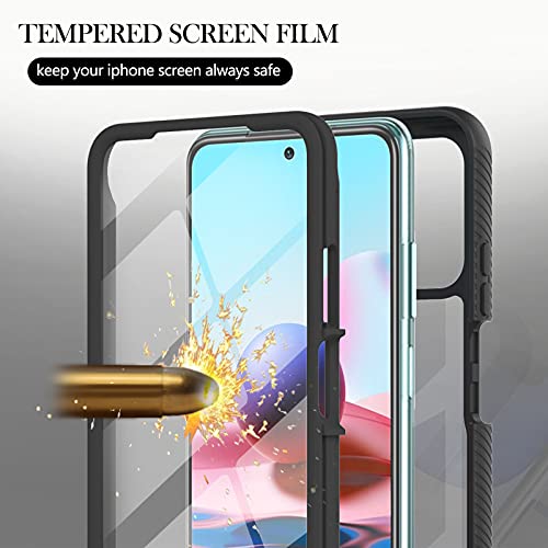 WEIOU Cover per Xiaomi Redmi Note 10 4G | Note 10s con Protezione dello Schermo, 360 Gradi Silicone TPU Bumper e Trasparente PC Pannello Rugged Custodia Protettiva Case. Nero