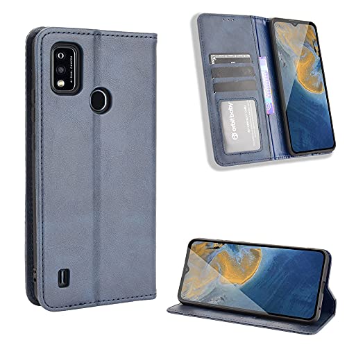 WEIOU Leather Folio Cover per ZTE Blade A51, Custodia in Pelle PU Magnetica Libro Flip Portafoglio con [Funzione Stand]. Blu