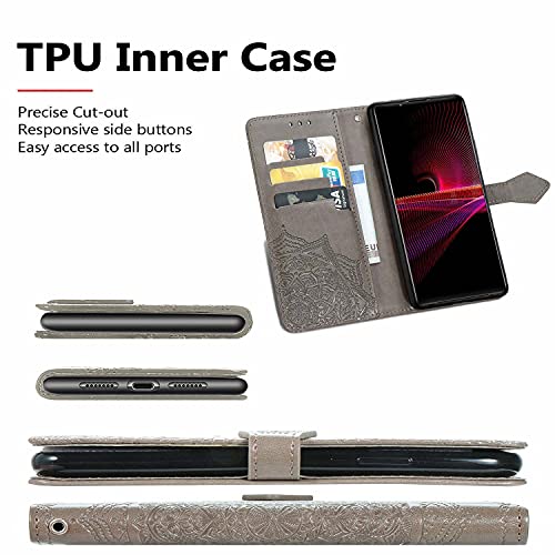 WEIOU Leather Folio Cover per Cubot Note 20 / Note 20 PRO, Goffratura a Mandala Custodia in Pelle PU Magnetica Libro Flip Portafoglio Case con [Funzione Stand]. Grigio