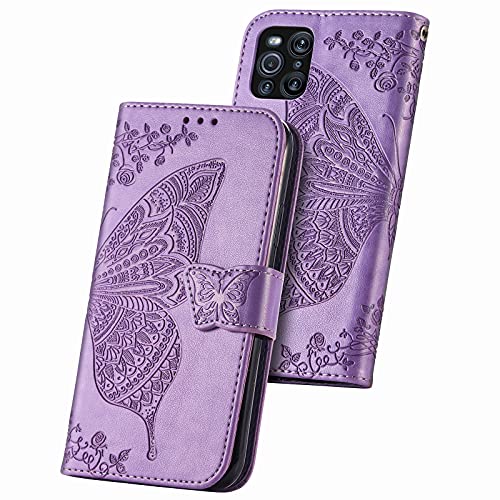 WEIOU Leather Folio Cover per Oppo Find X3 PRO, Goffratura a Farfalla Custodia in Pelle PU Magnetica Libro Flip Portafoglio Case con [Funzione Stand]. Viola Chiaro