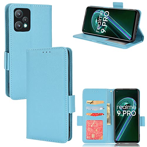 WEIOU Leather Folio Cover per Realme 9 PRO+(9 PRO Plus)/ Realme 9 4G(6.4") Case, Custodia in Pelle PU Magnetica Libro Flip Portafoglio Bumper con [Funzione Stand]. Azzurro