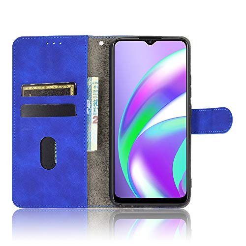 WEIOU Leather Folio Cover per Realme 7i / Realme Narzo 30A, Custodia in Pelle PU Magnetica Libro Flip Portafoglio con [Funzione Stand]. Blu