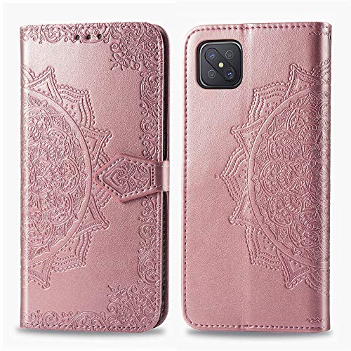 WEIOU Leather Folio Cover per Oppo Reno 4Z 5G (Reno4 Z), Goffratura a Mandala Custodia in Pelle PU Magnetica Libro Flip Portafoglio Case con [Funzione Stand]. Oro Rosa