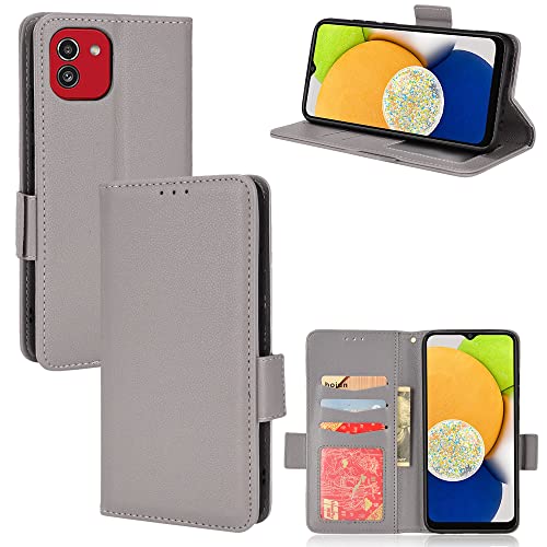 WEIOU Leather Folio Cover per Samsung Galaxy A03 Case, Custodia in Pelle PU Magnetica Libro Flip Portafoglio Bumper con [Funzione Stand]. Grigio