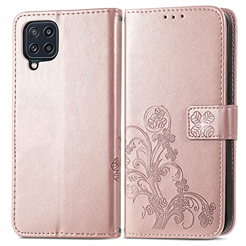 WEIOU Leather Folio Cover per Samsung Galaxy M32, Trifoglio Fortunato Custodia in Pelle PU Magnetica Libro Flip Portafoglio Case con [Funzione Stand]. Oro Rosa