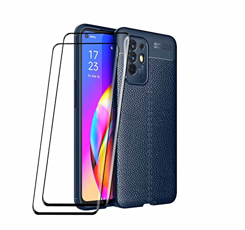 WEIOU Rugged Armor Cover per Oppo A94 5G (Reno 5Z) + 2 Vetro Temperato, Aspetto Come Pelle Custodia in Morbida TPU Anti-Graffio Antiurto Protettiva. Blu