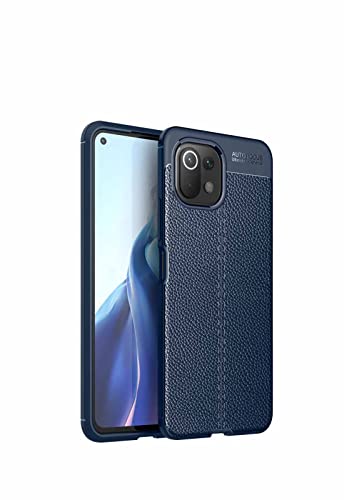 WEIOU Rugged Armor Cover per Xiaomi Mi 11 Lite 5G / 4G / 11 Lite 5G NE, Aspetto Come Pelle Custodia in Morbida Silicone TPU Anti-Graffio Antiurto Protettiva Case Bumper. Blu
