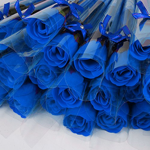 Weiye 38PCS Sapone Garofano Fiore di Rosa - Sapone Rosa Fiore Flora - Olio Essenziale Sapone vegetale, Regalo per Anniversario/Compleanno/Matrimonio/San Valentino/Festa della Mamma Regalo Blue a