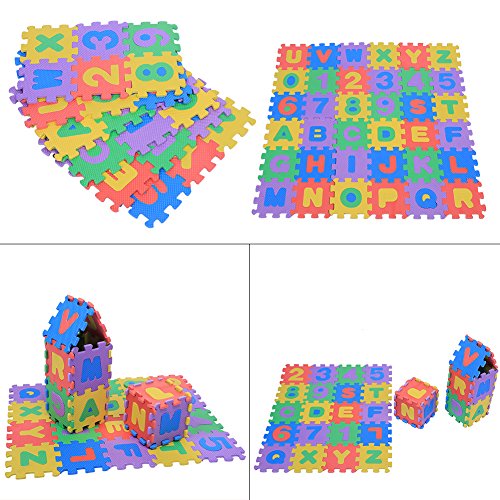 Tutti i tappetini da 36 pezzi possono essere assemblati insieme in un grande tappetino per bambini che giocano o gattonano e alcuni dei tappetini da 36 pezzi possono anche essere montati in diverse forme di giocattoli da bambini, come una casetta, una scatola quadrata e così via