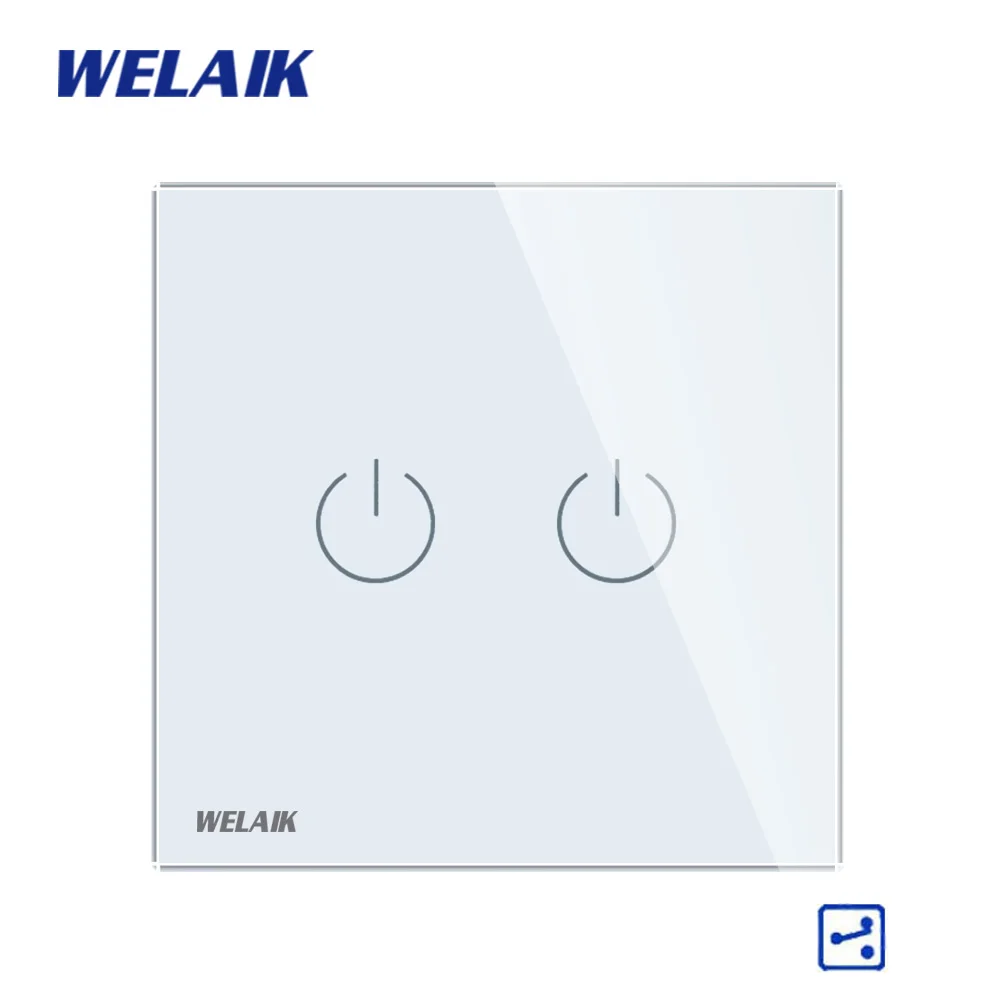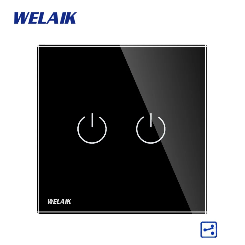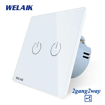 WELAIK EU 2gang2way Stairs-Touch-Switch Tempering-Crystal-Glass-Panel Switch-Screen-Wall Light-Switch AC250V A1922CW