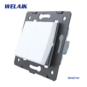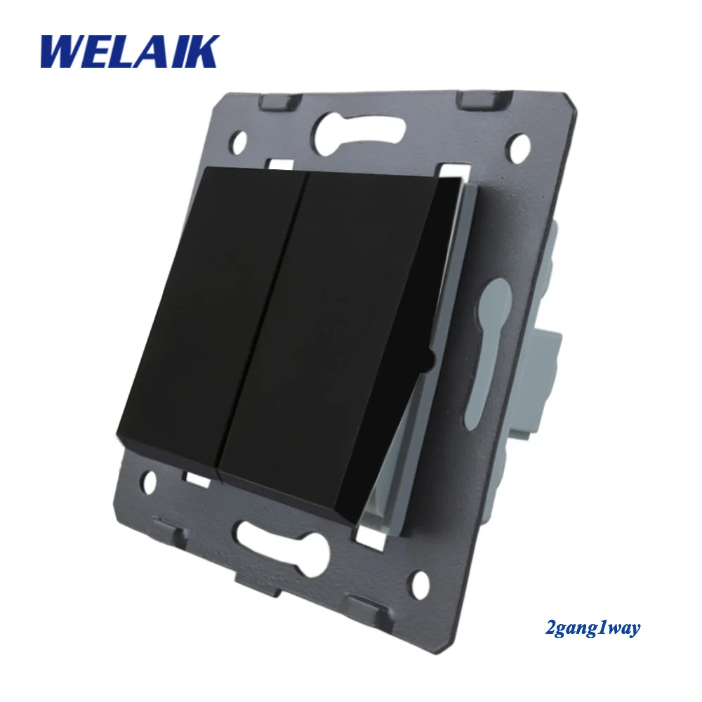 WELAIK EU Wall-Switch-DIY Parts-Push-Button 2Gang-1Way-Switch DIY-Parts Wall-Light Switch-Crystal-Glass-Panel AC110-250V A721W/B