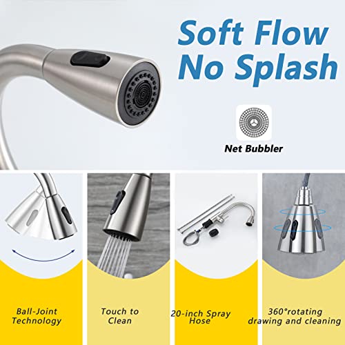【Alta Qualità】 Il rubinetto cucina estensibile è realizzato in acciaio inossidabile di alta qualità, garantisce resistenza alla corrosione, ai graffi e senza piombo.Dotato di due tubi flessibili per il collegamento di acqua fredda e calda.La qualità è buona e non perde.È un buon aiuto per la cucina.