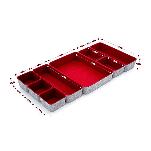 Materiale: feltro riciclato con sensazione confortevole al tatto. Nessun rumore come la plastica, impedisce alle cose di volare nel cassetto. Morbido per evitare graffi, flessibile per risparmiare spazio su scrivania, cucina, bagno o ovunque tu voglia con questi eleganti contenitori portaoggetti e organizer.