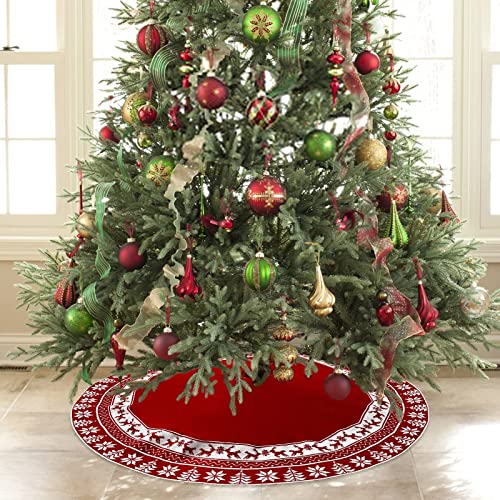Weldomcor Gonna Albero di Natale Lavorata 122 cm Rustica Grande Tappeto Albero di Natale Gonna Base Tappetino Copertura per Albero di Natale Ornamenti Natalizi Decorazione della casa, Rosso