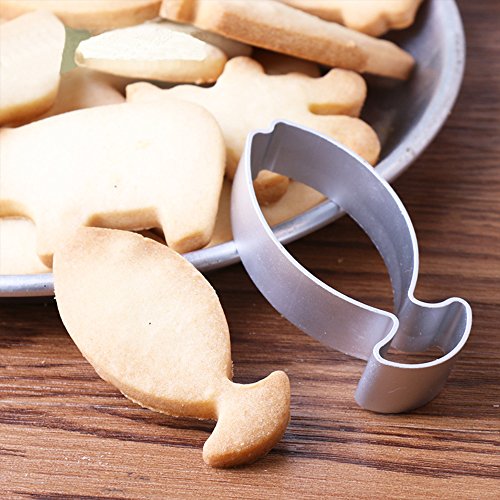Welim - Stampo per biscotti a forma di pesce per biscotti, per decorare torte, glassa, fondente e zucchero, 2 pezzi