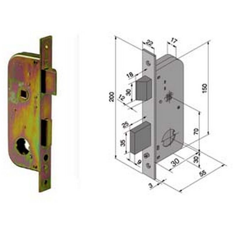 Scatola e frontale in acciaio tropicalizzato, catenaccio in acciaio 2 mandate con scrocco reversibile separato e quadro maniglia - funzionante con cilindro tondo ? mm.22 non compreso