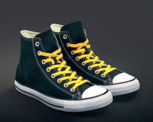 WELKOO lacci piatti, lacci durevoli in cotone 100%, 1 paio. Colori Giallo e lunghezza (150 cm x 8 mm). Compatibile con Nike, Adidas, Converse, Reebok, New Balance e molti altri.