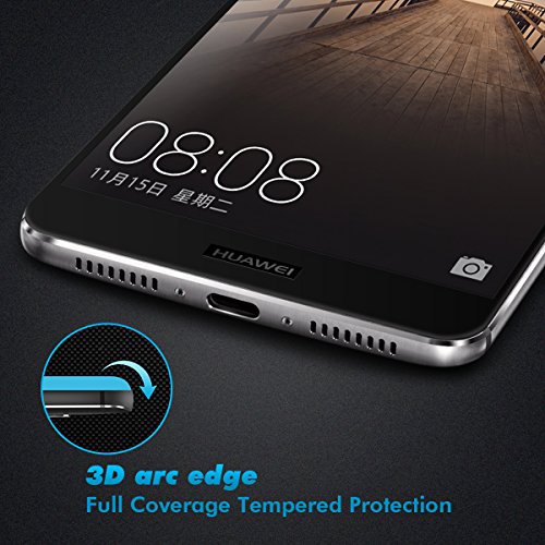 [Full Screen Full Cover] Full Cover con bordi arrotondati. Questo vetro antiproiettile copre il 98% dell'intero schermo del Huawei Mate 9 e offre la migliore protezione. Il foglio va verso i bordi, da bordo a bordo.