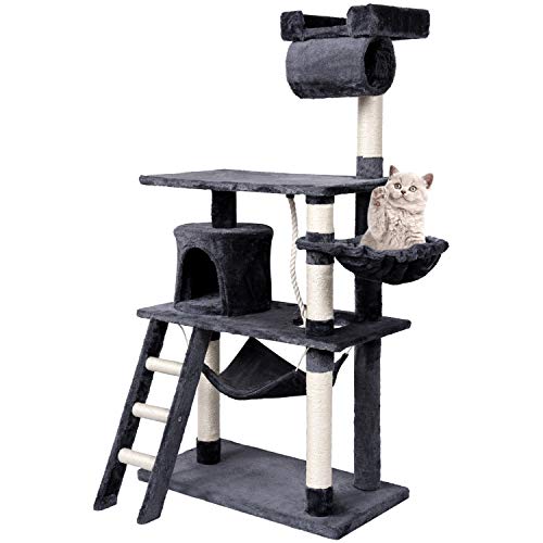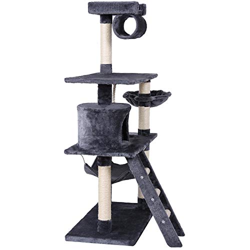 Materiali Di Alta Qualità: questo albero di gatto multi-livello è composto da pannelli di particelle di MDF e peluche grigio per la pelle. I tiragraffi rinforzati con sisal naturale rendono sani i loro artigli.