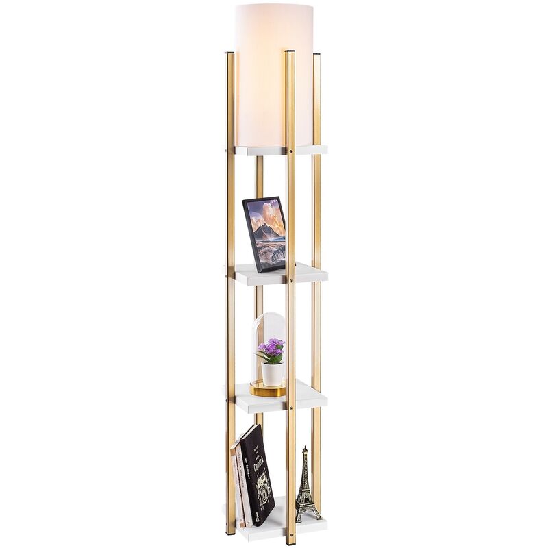 Lampada da pavimento Colore bianco Oro Struttura metallica Schermata del diametro: 20 cm Altezza: 34 cm Misura: 25 x 25 x 130 cm Max 40 w Tipo di discussione: 1 x E27 220 240 v Cavo di isolamento doppio IP20 Bulbo non incluso. Interruttore di onda/spegnimento nel cavo Lunghezza del cavo: 400 cm Capacità di carico: 3 kg