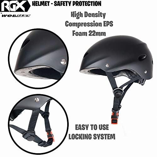 RESISTENZA AGLI URTI: Il casco RGX è dotato di un involucro esterno antiurto in Policarbonato ed un riempimento in schiuma EPS ad alta densità di spessore di 22 mm che aiuta l'assorbimento dell'impatto e proteggere la testa