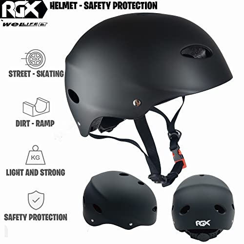 WeLLIFE Casco Regolabile per Bambini e Set Protezione Completo di Ginocchiere Gomitiere Parapolsi per Skateboard Pattini in Linea Bicicletta Monopattino (M (8-14 anni))