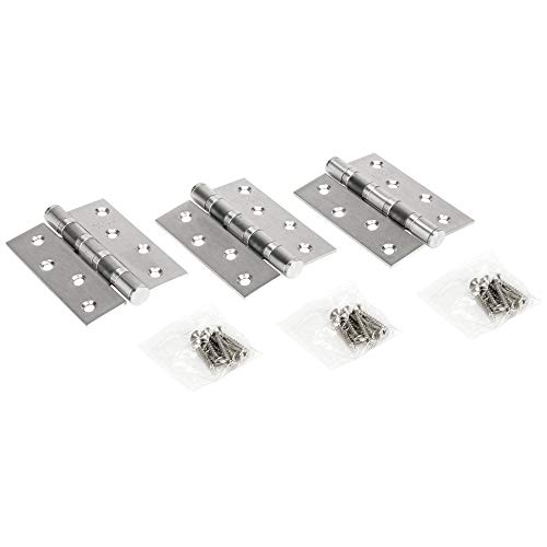 WELLOCKS Cerniere per Porta 10x7,5 cm 3 pezzi in acciaio inox 304, cerniera della con cuscinetti a sfera di 3 mm di spessore Argento spazzolato e liscio Perfetto per porte pesanti silenzioso (D040)