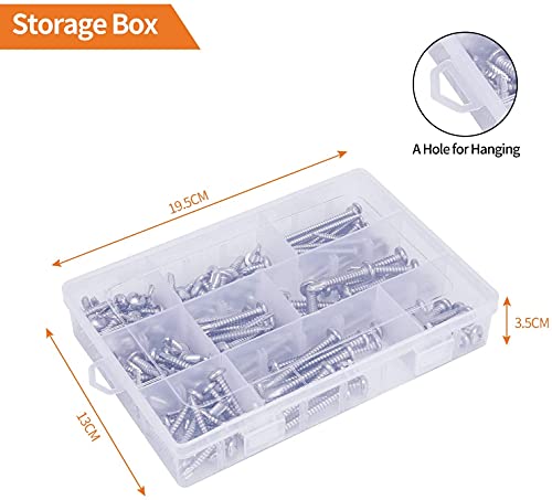 【SCATOLA PORTAOGGETTI】 Il set da 187 pezzi viene fornito in una pratica custodia organizer in plastica con scomparti per riporlo facilmente e in caso di smarrimento. Con un foro nella scatola puoi appenderlo. È un must per qualsiasi cassetta degli attrezzi di utilità. Note: c'è un leggero errore di quantità nel peso della confezione. Se non hai ricevuto un kit completo, contattaci e ricevi la parte rimborsata del denaro.