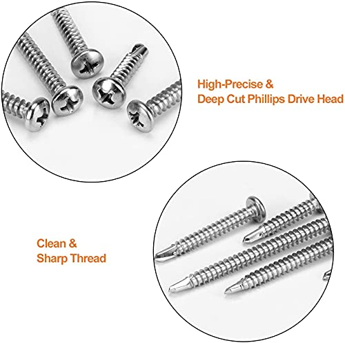 【IL RE DELLA QUALITÀ】 Utilizzare il materiale più resistente al 100% in acciaio inossidabile 410, resistente alla corrosione e antiruggine in ambiente umido, che può essere conservato a lungo, ad alta resistenza e indeformabile. Questa gamma di viti viene utilizzata principalmente in metallo, legno o plastica e di solito ha una forte punta autoperforante che facilita la penetrazione nel materiale.