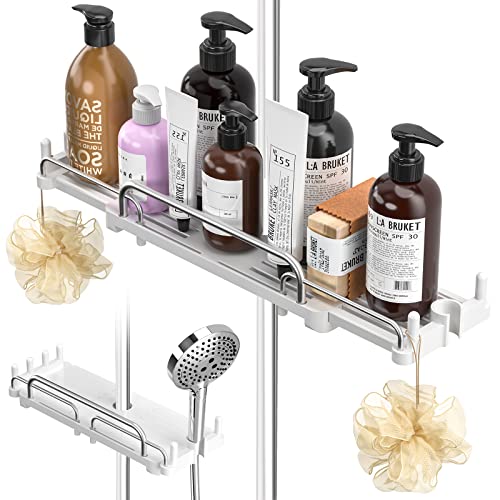 Welltop Mensola Doccia Mensola da bagno estensibile Organizzatore per doccia senza foratura Grande mensola per doccia da bagno, adatta per asta doccia da 18-26 mm (bianco)