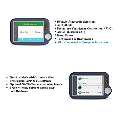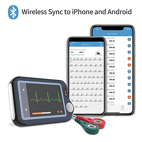 Wellue Monitor ECG, Monitor cardiaco con ECG, dispositivo EKG Bluetooth con APP per iOS e Android, lavoro con Smartphone e PC, registrazione 30s/60s/5mins, inseguitore di salute del cuore