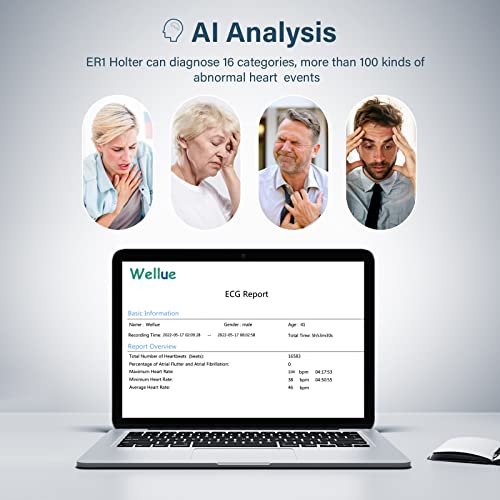 Wellue Monitor ECG, registratore Holter professionale con report di analisi AI-ECG, registrazione ECG 24 ore su 24, software di supporto per PC, stampa ECG PDF, cardiofrequenzimetro per uso domestico