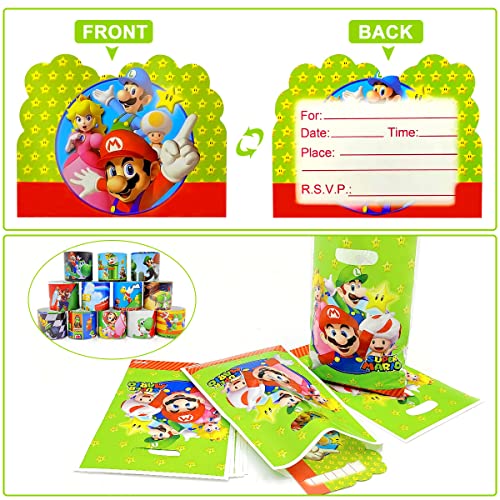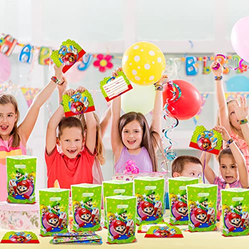 WELLXUNK 32pcs Bomboniere per Feste Mario, Gadget Compleanno Bambini Kit, Set Regalo di Compleanno per Bambini, Party Favours, Giocattoli per Bomboniere, Sacchetti Regalo, Braccialetti