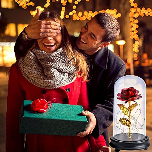 【Materiali alta qualità】La rosa è realizzata in foglia d'oro di alta qualità, l'aspetto è paragonabile alla rosa reale ed è ricoperta da una cupola di vetro lucido, che può proteggere la rosa e mantenerla per sempre.