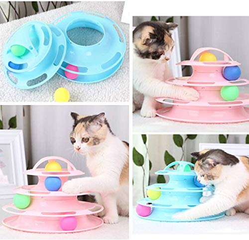 [Traccia a 4 Strati]: Giocattolo gatto traccia 4 strati, c'è una palla su ogni piano, una di queste contiene catnip, quattro strati di 4 palle, i gatti le adoreranno moltissimo!Giocattolo Gatto ha una traccia e una palla in più del popolare giocattolo. Design rimovibile,giocattolo gatto traccia facile da installare e pulire.