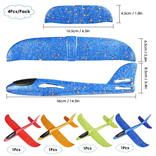 WELLXUNK 4 Pezzi Aliante Aereo Schiuma,Aereo Giocattolo Bambini,Aliante Schiuma,Mano Giocattolo Aeroplano,Giocattoli Aereo in Schiuma,Aliante Velivoli Manuale (Blu + Arancione + Rosa + Verde)