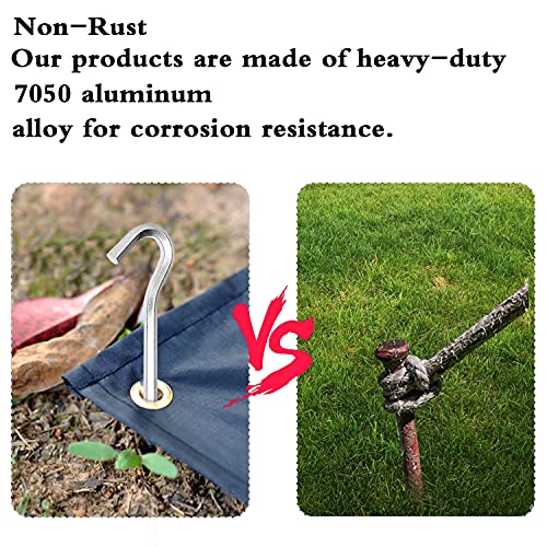 ✔【Design con gancio】I picchetti per il terreno della tenda sono progettati con ganci antiscivolo sull'estremità superiore che offre una presa migliore rispetto al tondo, che permette di fissare meglio la corda, impedisce alla corda di cadere e di avere una migliore aderenza.