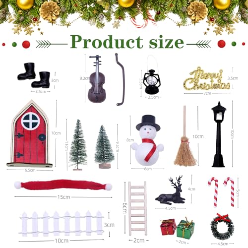 【Set di decorazioni natalizie】Il set completo di porte per gnomi da 20 pezzi include 1 porta per gnomi, 2 alberi di Natale, 1 scopa, 1 ghirlanda di Natale, 1 lampada a olio, 2 stivali, 1 recinzione, 1 scala in legno, 1 renna, 1 pupazzo di neve, 1 chitarra, 2 bastoni da passeggio, 1 lampione, 1 sciarpa, 1 Buon Natale, 2 confezioni regalo per soddisfare le tue esigenze di decorazione.