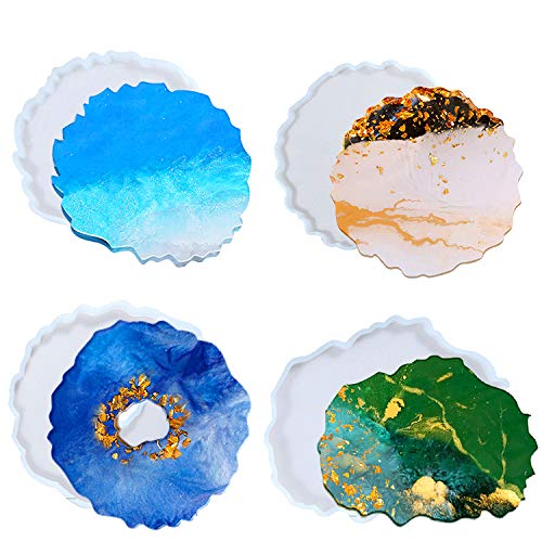 WELLXUNK Sottobicchiere in Silicone stampi,4PCS Stampi in Resina Sottobicchiere Siliconica Stamp Sottobicchiere stampi,per Realizzare sottobicchieri e Altre Decorazioni Fai-da-Te