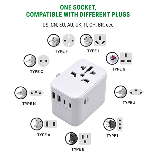 COMPAGNO DI VIAGGIO IDEALE: Grazie alle dimensioni di 7,10 x 5,4 x 5,3 cm, questo adattatore WELLY ENJOY IT presa viaggio è compatto e portatile. Il concetto di ingresso all in 1 soddisfa le tue diverse esigenze di viaggio e ti fa risparmiare molto spazio nel bagaglio senza dover portare più adattatori da viaggio. È anche un buon caricatore USB da avere a casa anche quando non sei in viaggio. Dotato di materiale ignifugo e compreso di Indicatore luminoso a led.