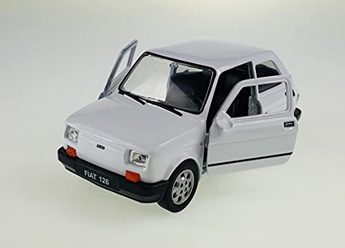 Welly Fiat 126 bianco simile a Polski Fiat 126p 1972-2000 ca 1/43 1/36-1/46 modello auto